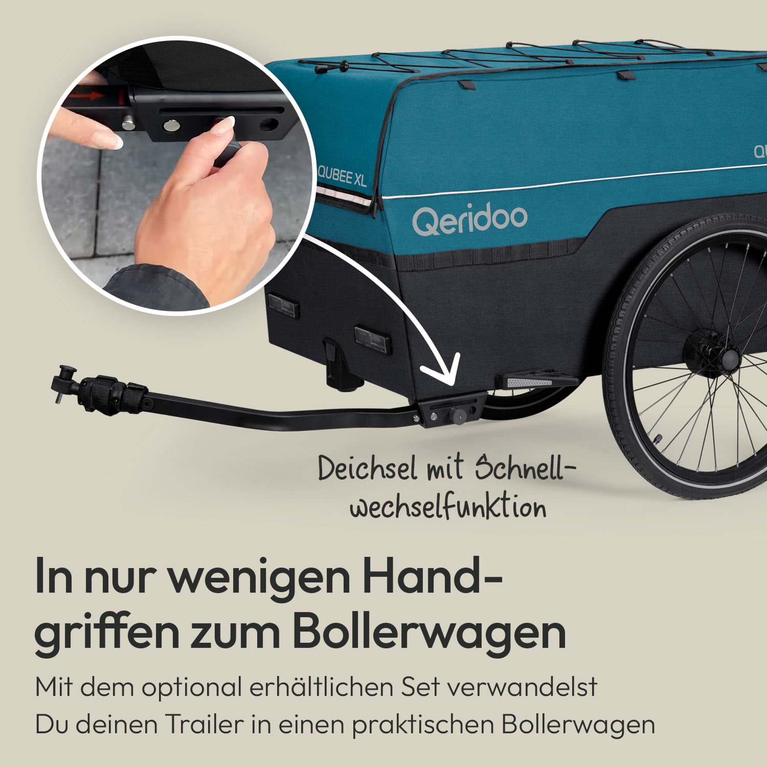 - Der Qeridoo ist kein Kinderspielzeug und darf nicht als solches zweckentfremdet werden. Entsprechend ist es nicht zulässig, den Qeridoo an ein Kinderfahrrad anzuhängen.