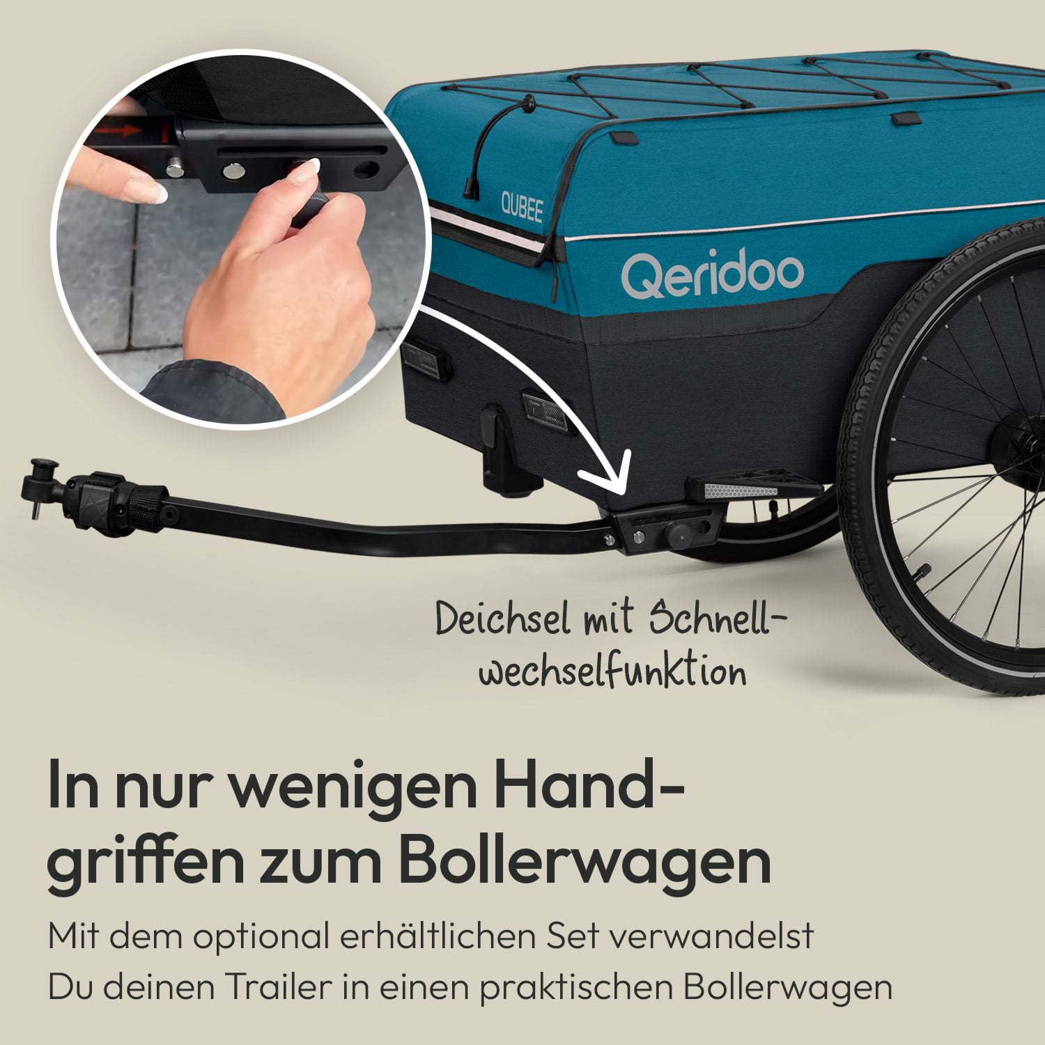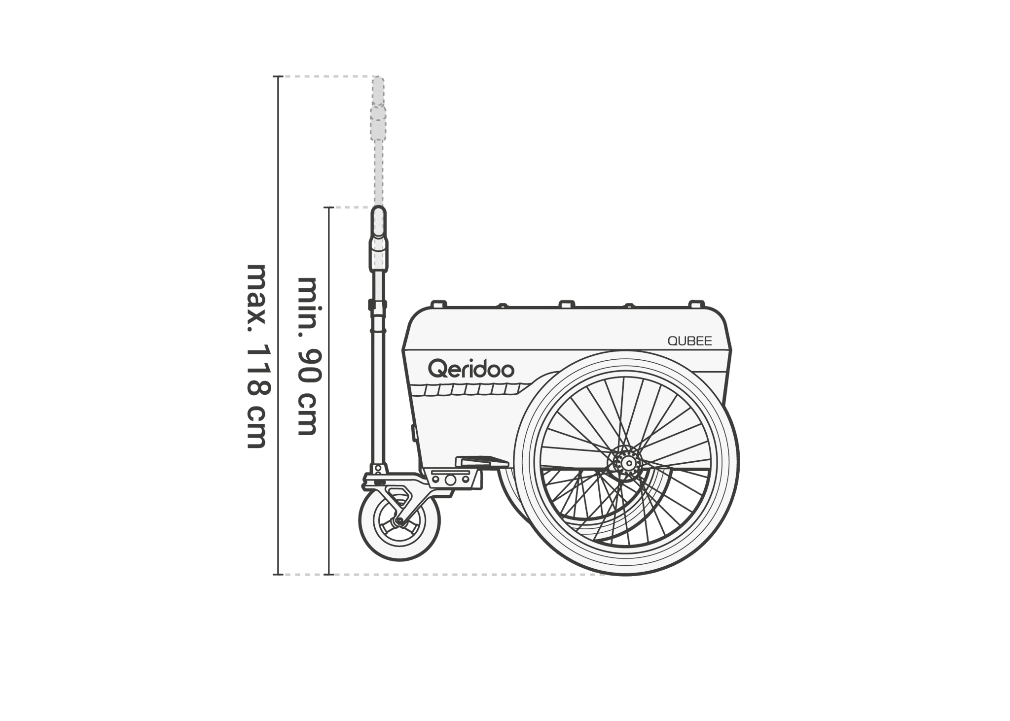 - Der Qeridoo ist kein Kinderspielzeug und darf nicht als solches zweckentfremdet werden. Entsprechend ist es nicht zulässig, den Qeridoo an ein Kinderfahrrad anzuhängen.