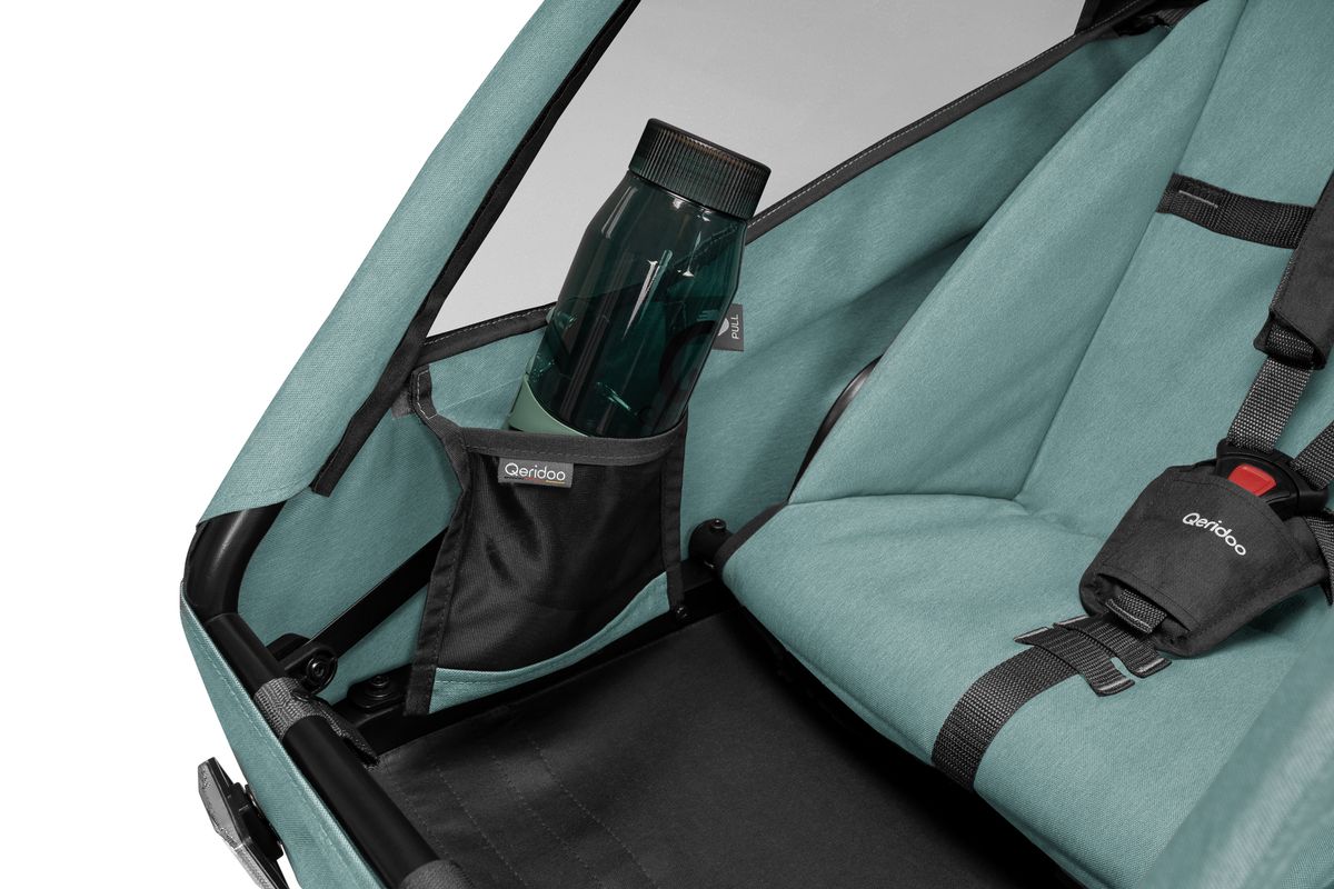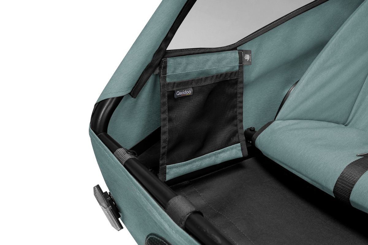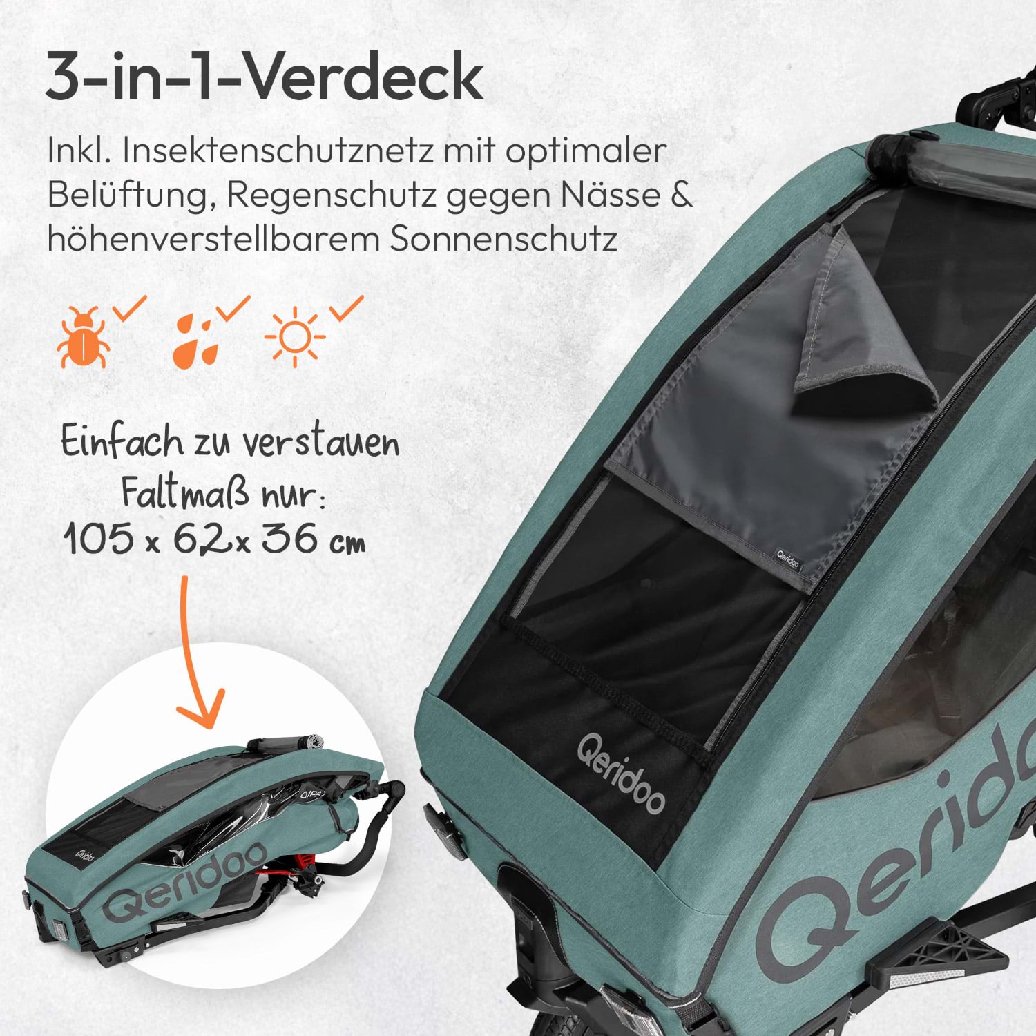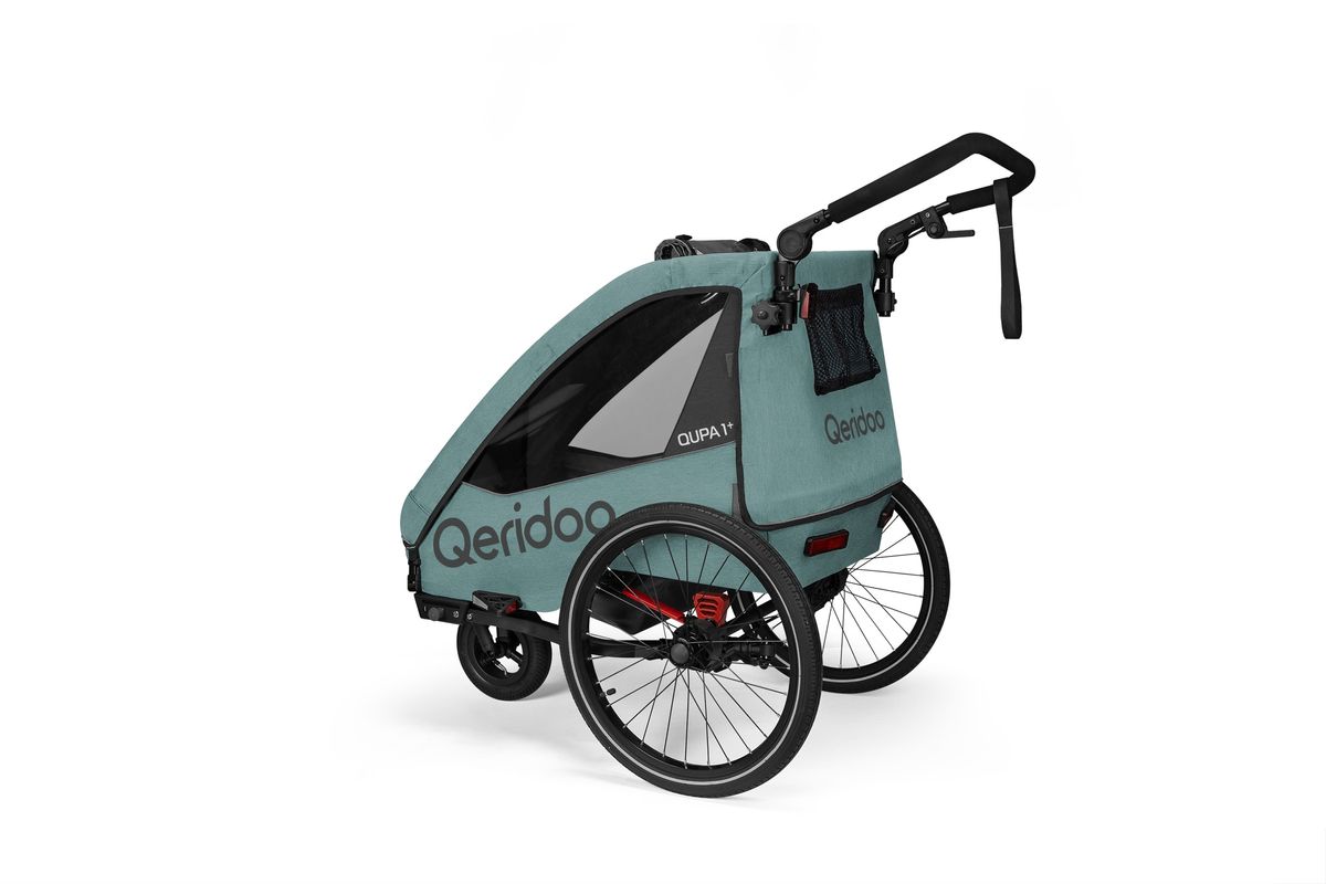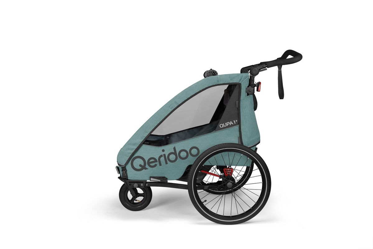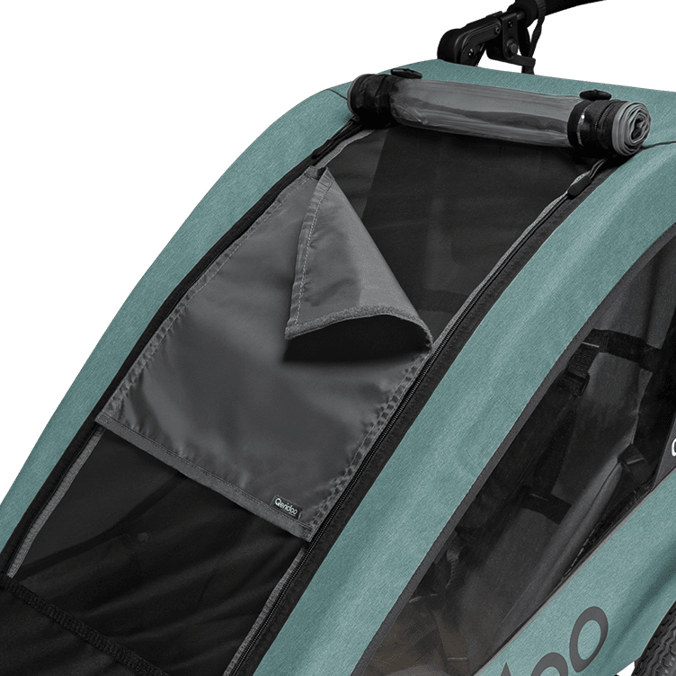 Die Sicherheit der Kinder hat bei Qeridoo höchste Priorität. Alle Kinderfahrradanhänger verfügen über einen verstärkten Aluminiumrahmen für umfassenden Rundumschutz sowie über patentierte Kopfprotektoren, die im Falle eines Umkippens einen wichtigen seitlichen Sicherheitsabstand schaffen. Zusätzlich ist ausreichend Kopffreiheit gewährleistet, sodass bei einem Umkippen kein Kontakt mit Boden oder Rahmen entsteht; der höhenverstellbare Handgriff dient im Fahrradmodus zudem als Überrollbügel.